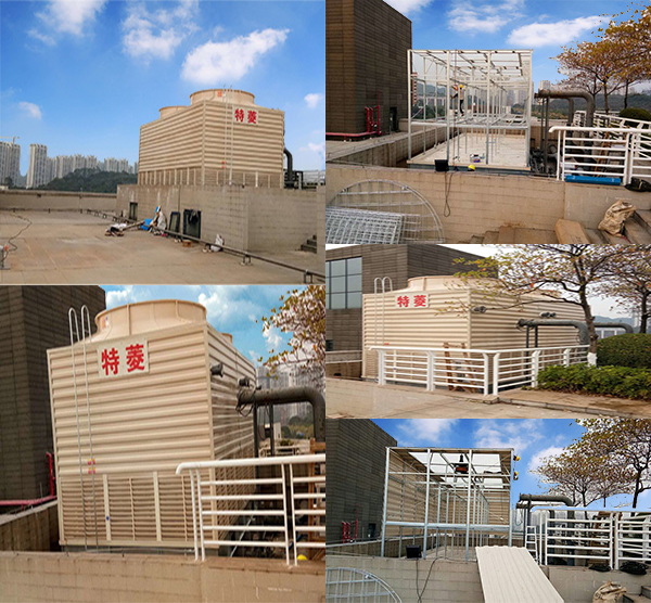惠州東江環(huán)保橫流方形冷卻塔安裝 廣東特菱空調(diào)(http://katemz.com)方形橫流式玻璃鋼冷卻塔結(jié)構(gòu)特點(diǎn): (1)擋板:玻璃鋼材質(zhì),表面光滑美觀,耐腐蝕,防老化。 (2)填料:改性聚氯