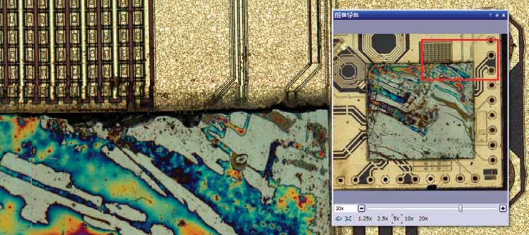 平移、縮放圖像后,在導(dǎo)航器全景圖上會實時更新當(dāng)前窗口的顯示位置,簡潔清晰的操作界面使圖像的瀏覽非常方便,并直觀地呈現(xiàn)操作結(jié)果。