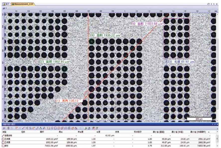 可進行距離、角度、矩形、圓、角度、橢圓和多邊形等參數(shù)的測量。測量結(jié)果可直接連同圖像文件一起保存,或?qū)隕XCEL表格作進一步統(tǒng)計分析。