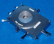 | 16 mm X,Y sample manipulators Sample side loading without removing the stage lid Clamps directly to the microscope substage for stability Stage body size - 137 x 92 x 22 mm Light aperture - 2.4mm ?Single ultra thin lid window - 0.17mm Sample area 22mm High thermal conductivity silver block for fast response and cooling Temperature range -196° to 600°C Temperature stability and sensor accuracy +/- 0.1°C |
