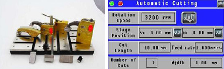 通過選配X軸電動平臺,實現(xiàn)一次裝夾情況下的序列切割,保證兩個切割面的絕對平行,且允許設(shè)置最多11種不同切割厚度。